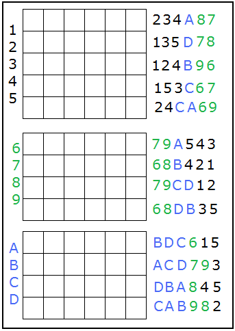 The blue letters A, B, C, D represent player numbers 10-13,